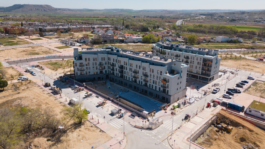 The residential project of 121 Build-To-Rent homes in Torrejón de Ardoz, has had a budget of 170 million euros. The construction company ACR has incorporated new industrialization techniques and the Afca Teccon steel frame system in the construction of the houses, both in the façade, as well as in the slabs and structure.