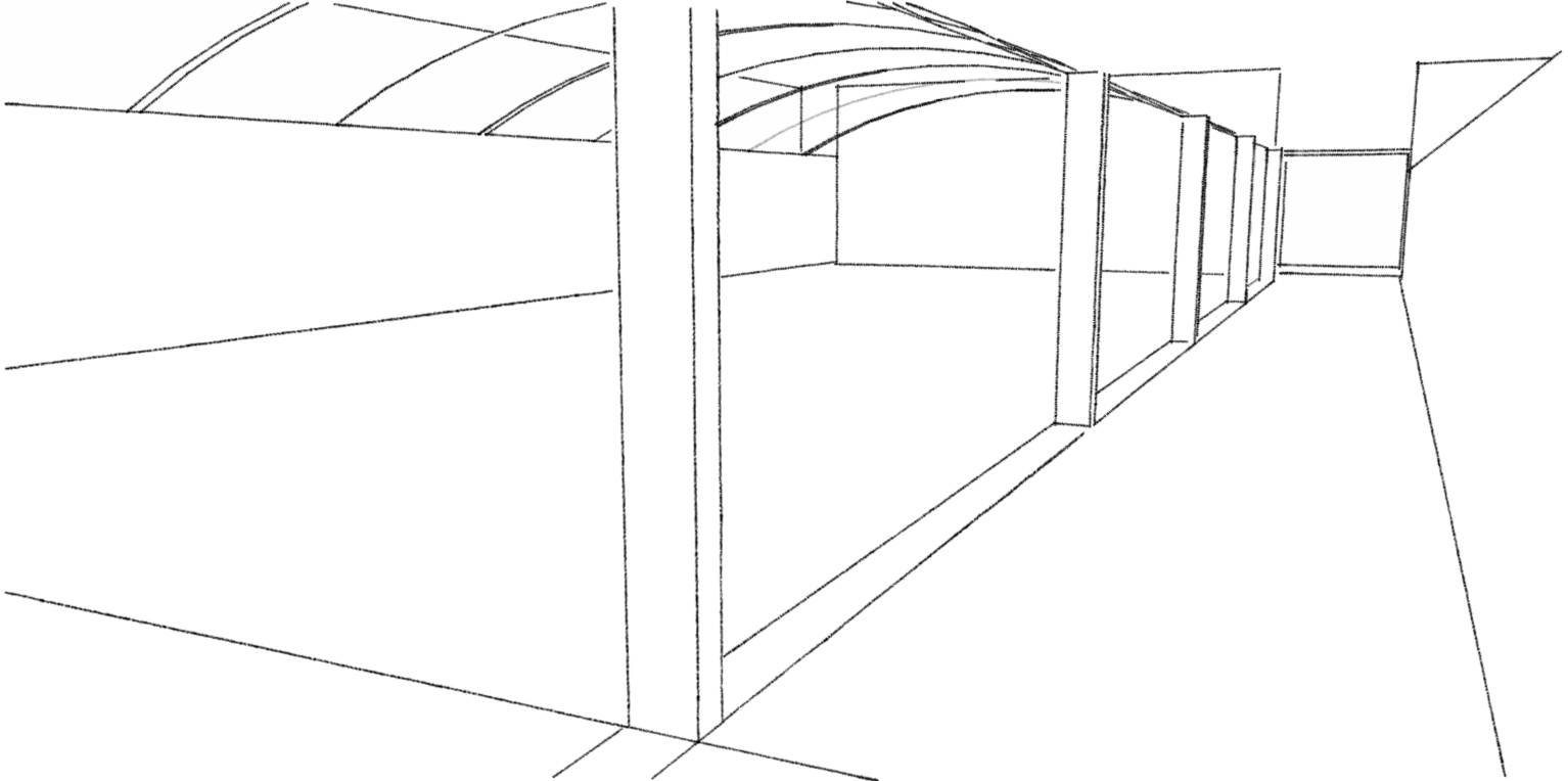 (1) Indicate the length of the span of the arch, which is the greatest horizontal distance between the supports of the curved roofing.