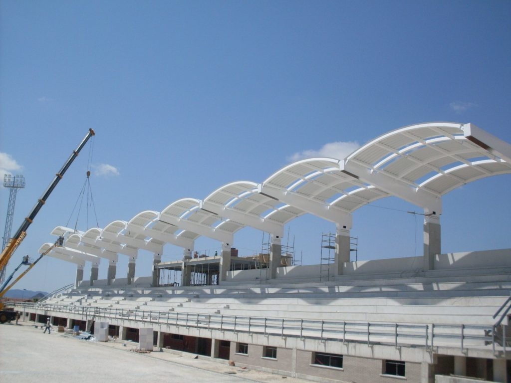 Le système de couverture cintrée pour le nouveau projet du stade de football d’Elda permet la préfabrication de la couverture en facilitant l’installation.