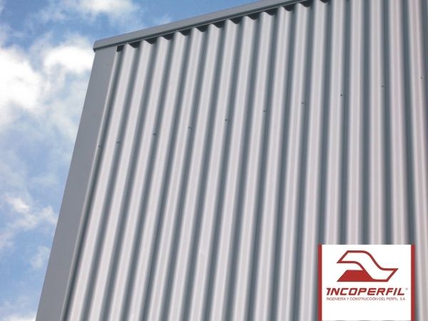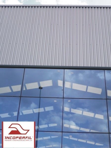 Cloison formé par le profil ondulé INCO 44.6 ONDULÉ. Le profil est installé en la façade en position Verticale et due à ses formes, il obtient un aspect différent au reste.