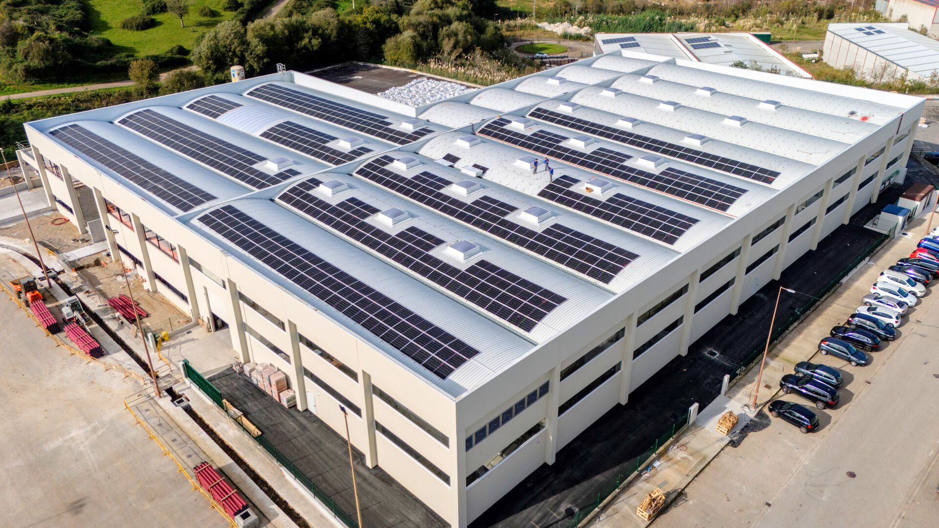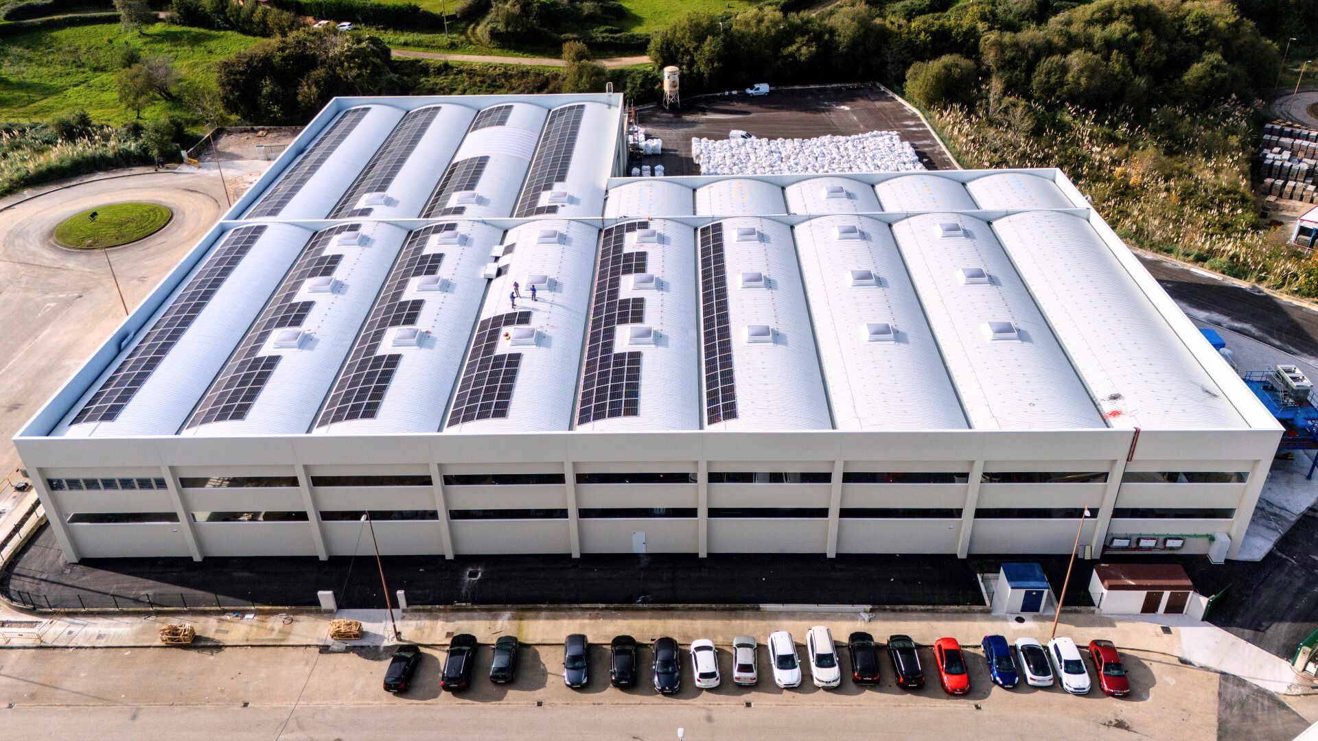 Además, sobre la cubierta se han instalado paneles solares, como parte del compromiso de la empresa con la sostenibilidad y la reducción de su huella de carbono. Los paneles fotovoltaicos se instalan de forma coplanar, adaptándose a la curvatura de la cubierta, para evitar la generación de esfuerzos adicionales sobre esta. Esta iniciativa permite aprovechar la amplia superficie disponible de la cubierta para la generación de energía renovable, contribuyendo al autoconsumo energético y a la eficiencia operativa de la planta.