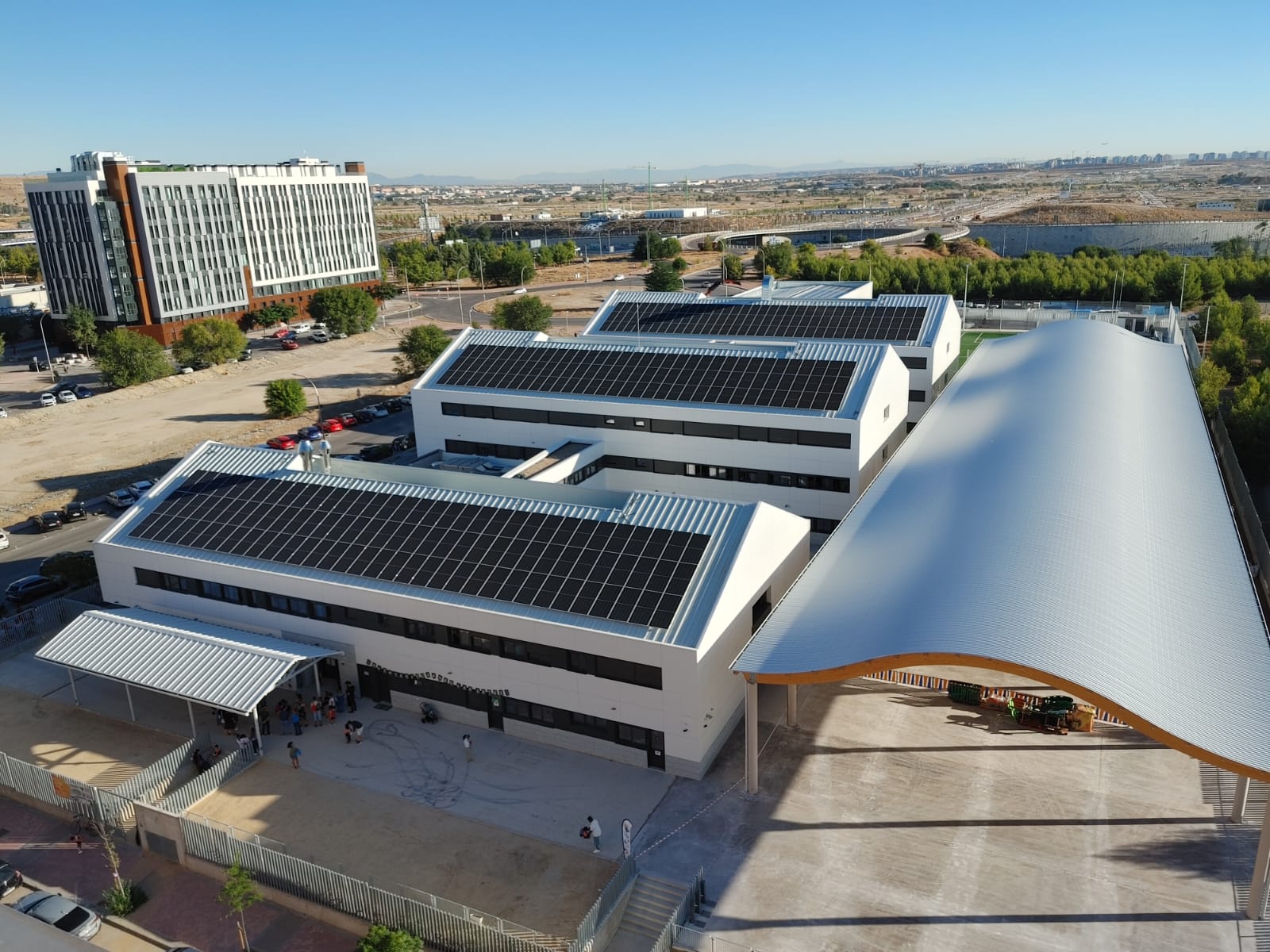 Este moderno edificio combina sostenibilidad, funcionalidad y espacios innovadores para la educación del siglo XXI. El proyecto contempla tres módulos principales con aulas amplias y flexibles, zonas verdes, y áreas deportivas que fomentan el aprendizaje integral y el bienestar de los estudiantes. Además se añade un sótano, un polideportivo y otro edificio realizado con sistemas de construcción prefabricado donde se encuentran dos piscinas climatizadas.