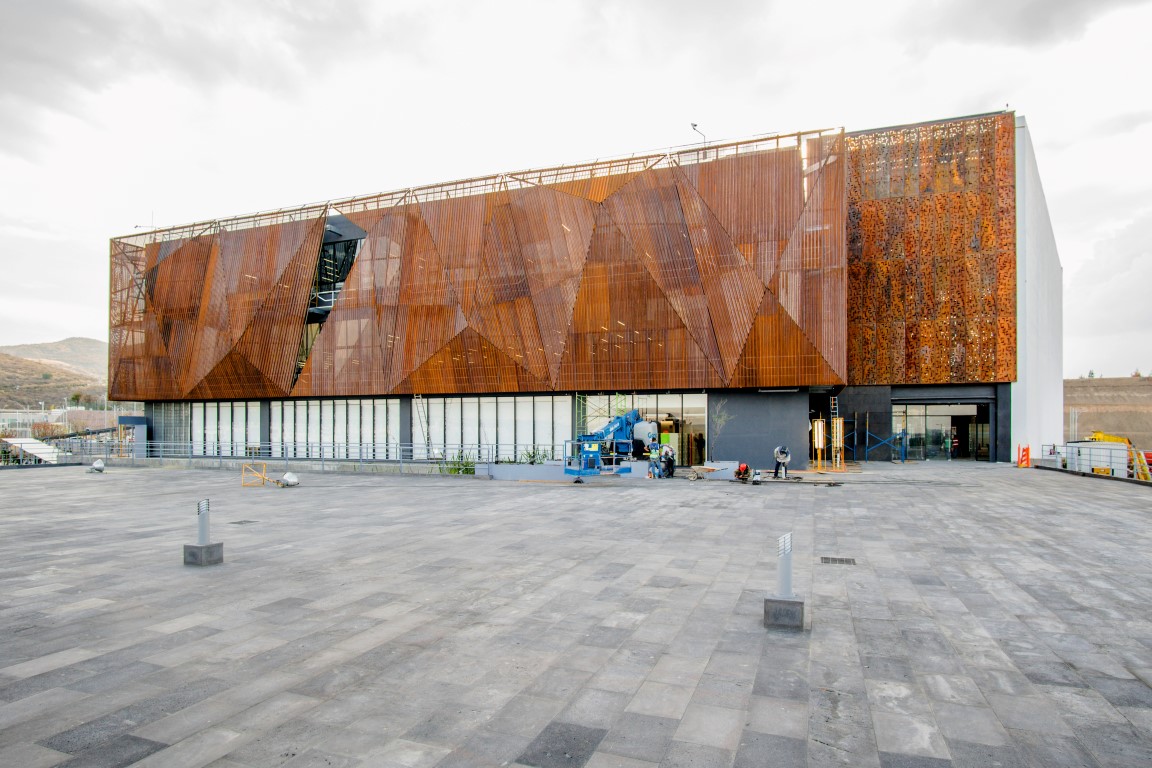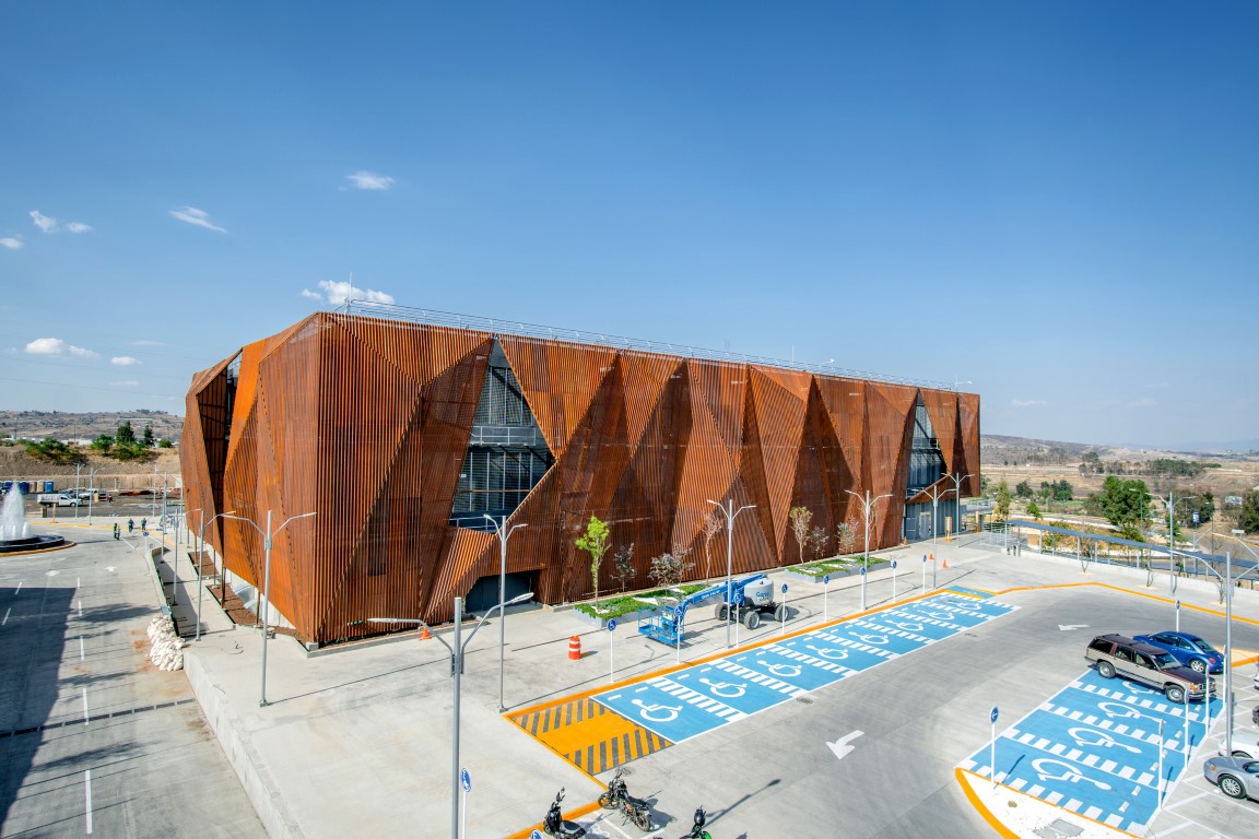 Fachada perforada de acero corten para el Centro Atención Telefónica de Liverpool en Morelia (Michoacán) – México