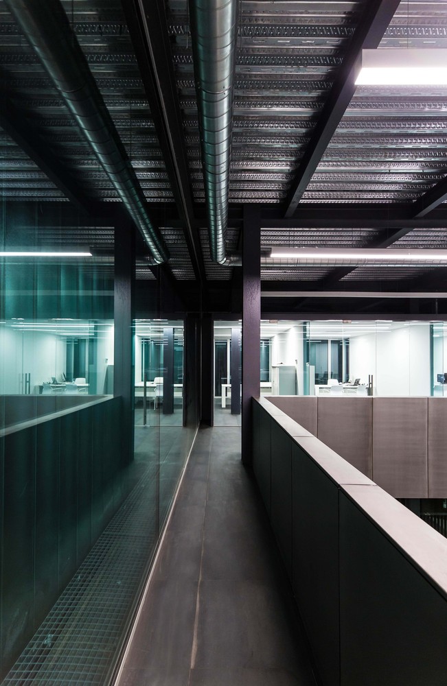 Los forjados de las oficinas se ha resuelto con el sistema de forjado colaborante. El perfil utilizado es el perfil INCO 70.4 Colaborante que, debido a su canto de 70 mm, soluciona de la manera más eficiente las luces libres de hasta 4,00 m sin necesidad de apuntalamiento.