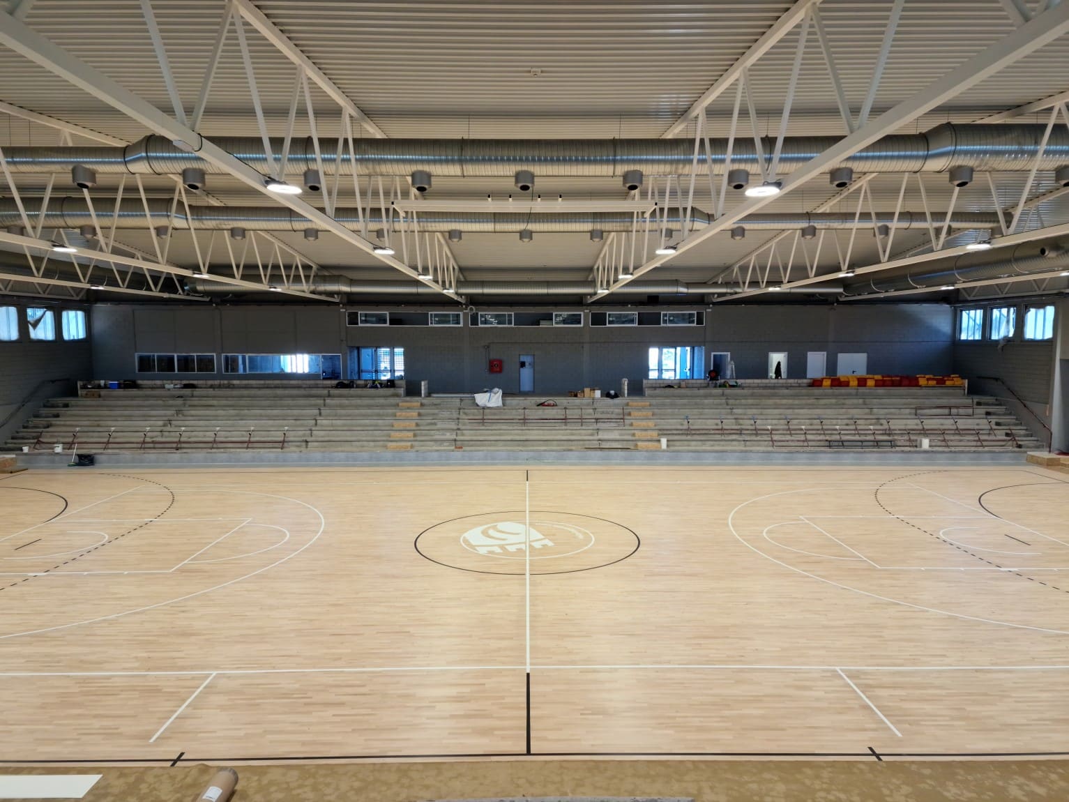 Esta rehabilitación ha permitido solucionar problemas de humedades y condensación que afectaban al edificio, construido hace más de 40 años. La renovación de los vestuarios, aseos y el perímetro de la cancha, junto con la instalación de paneles solares, contribuyen a la sostenibilidad y funcionalidad de las instalaciones.