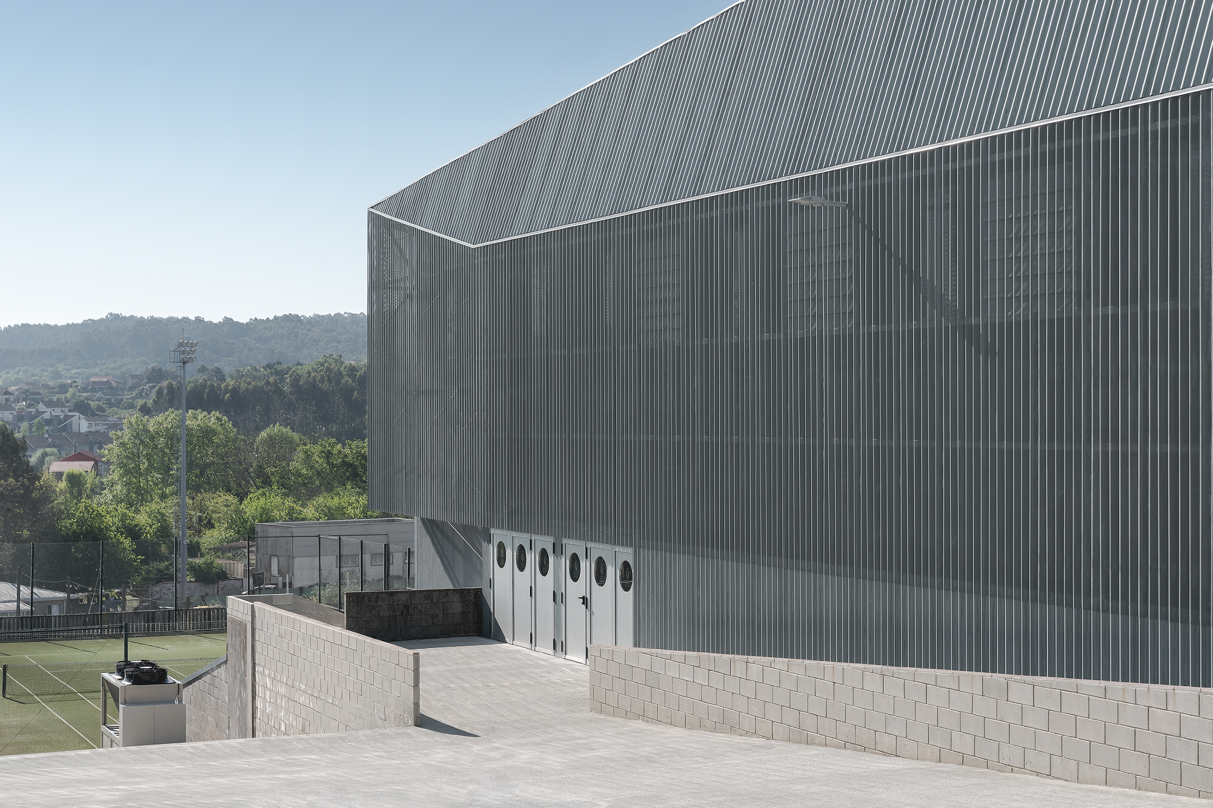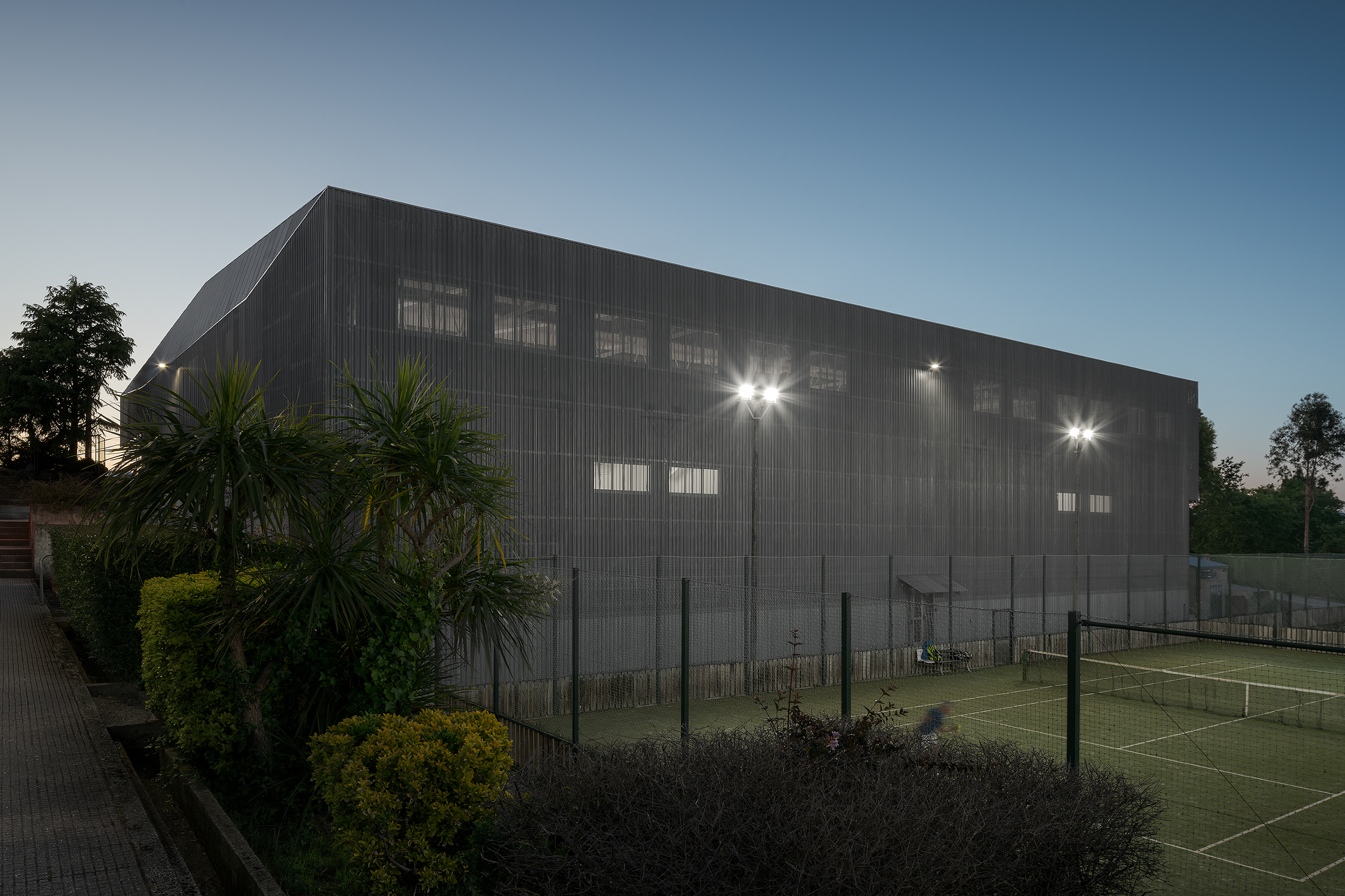 Además, en la fachada se ha utilizado el mismo perfil de revestimiento INCO 44.6 Ondulado perforado tipo R3T6, actuando como una nueva envolvente sobre las fachadas originales y como elemento de control solar. El revestimiento exterior, tanto en la fachada como en la cubierta, es de acero con un recubrimiento especial tipo Magnelis ZM310, lo que garantiza su durabilidad en un ambiente de tipo C4M.