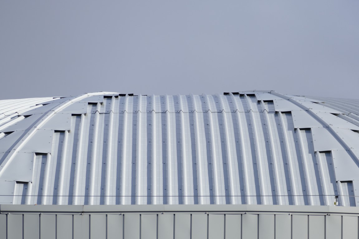 Para garantizar el comportamiento térmico y acústico de la cubierta se ha adoptado una solución sandwich in situ con el perfil INCO 44.4 Curvado, tanto en el interior como en el exterior, intercalando un aislamiento térmico entre ambos perfiles.