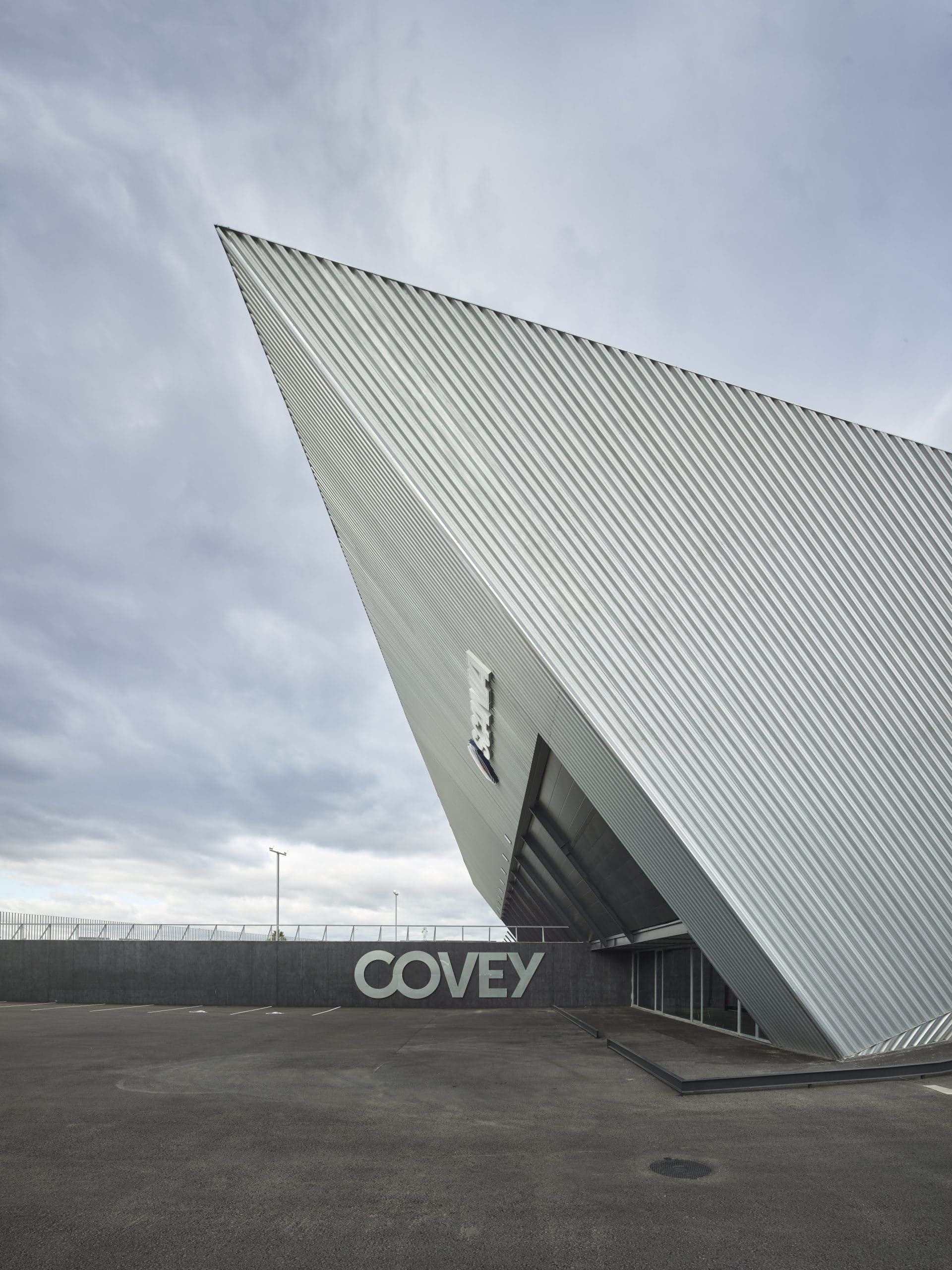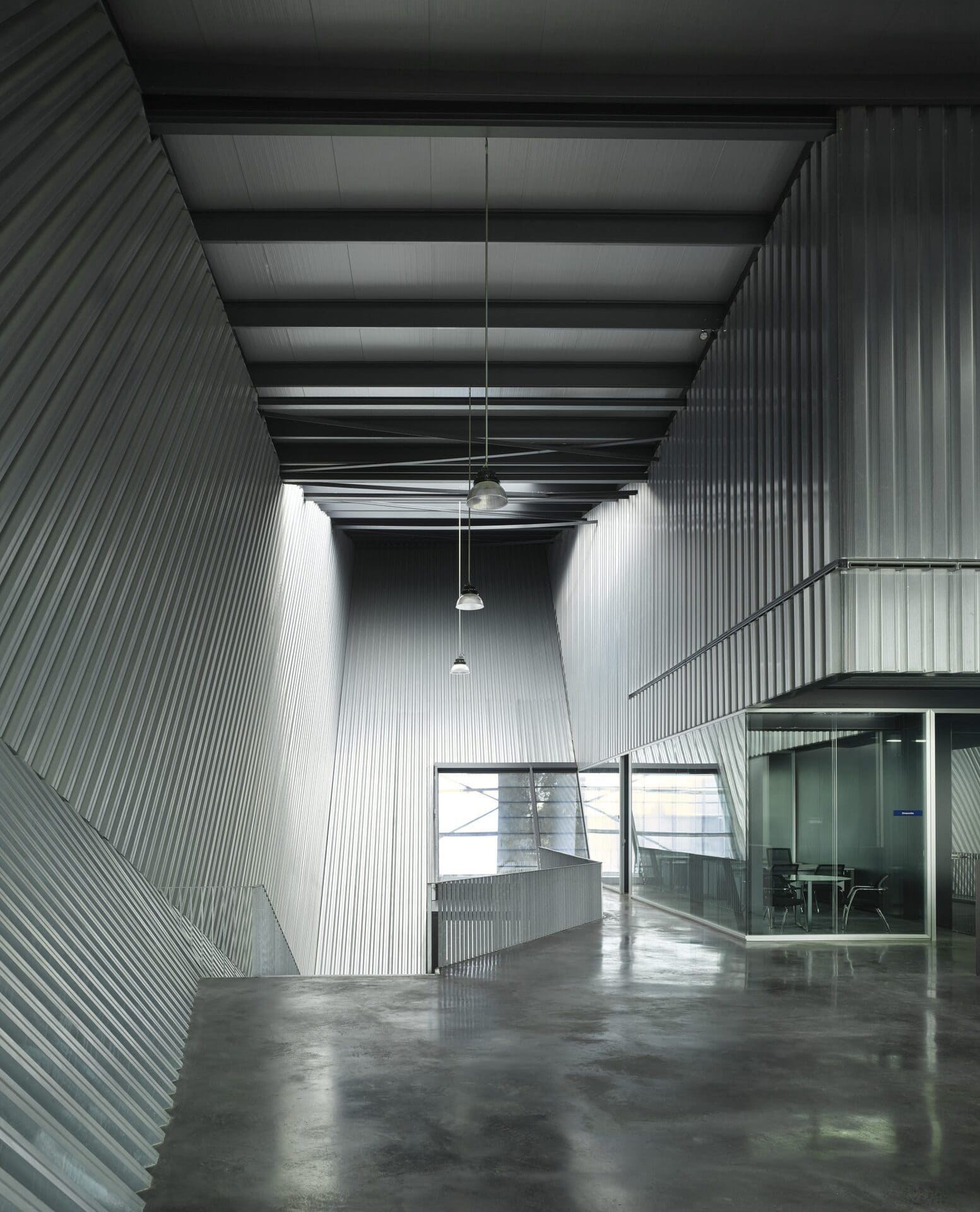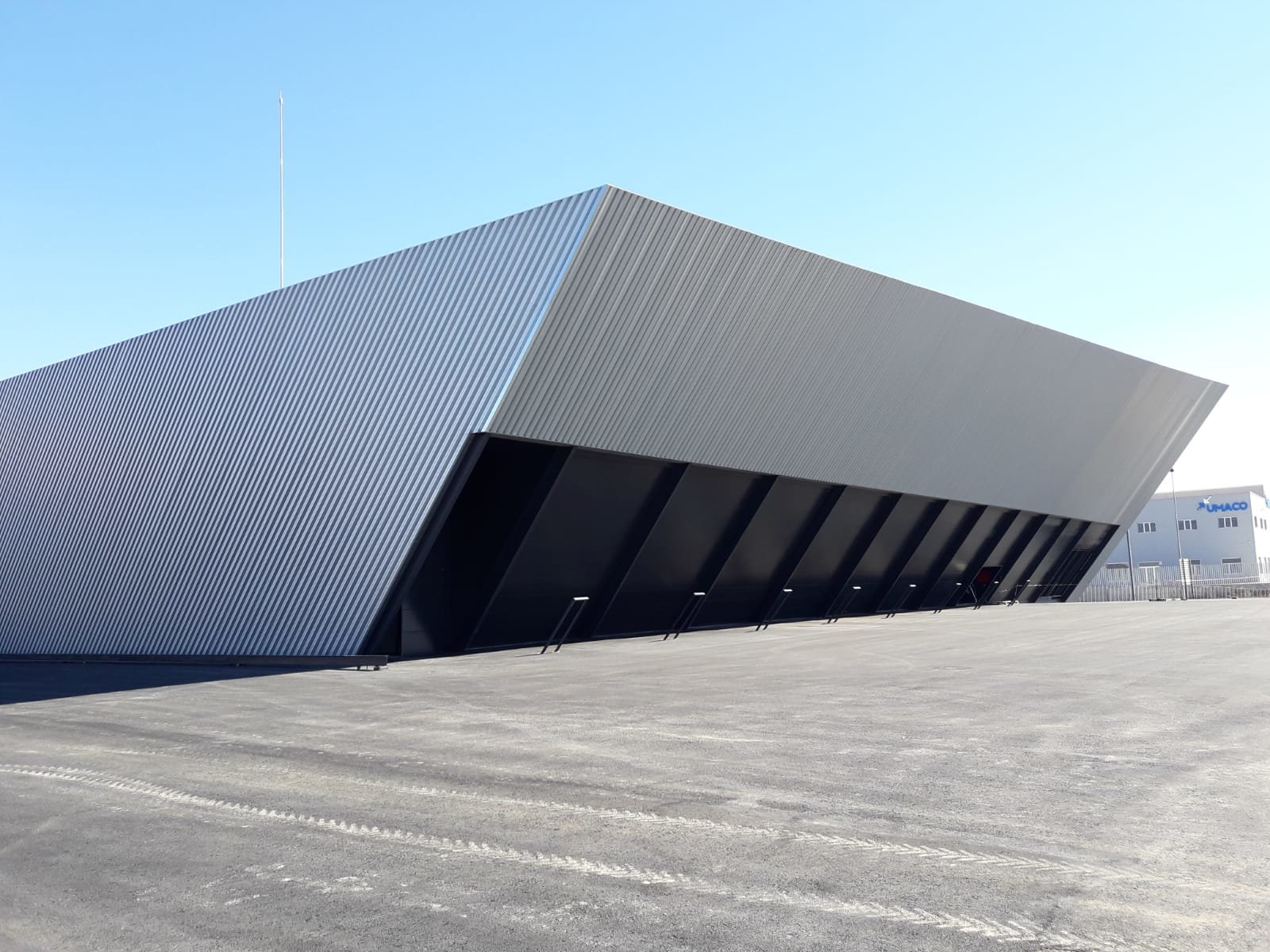 Este proyecto consta con una superficie en fachada simple de 2.500 m². El perfil que se ha elegido para el cerramiento es el INCO 70.4 en espesor 0,60 mm que otorga al edificio una imagen singular e innovadora. Con una altura de greca de 70 mm, el perfil INCO 70.4 es capaz de ofrecer una potente textura en las fachadas, en este caso potenciada por la inclinación del perfil en cada plano del cerramiento.