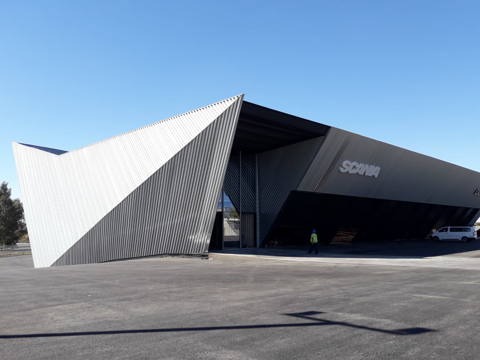 El perfil INCO 70.4 en acabado galvanizado ha sido elegido para cubrir la fachada del nuevo taller Grupo CICA para Scania.